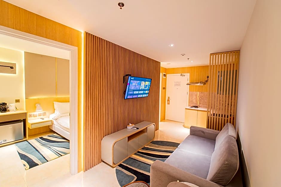 This suite offers a sauna. This suite consists of 1 living room, 1 separate bedroom and 1 bathroom with a walk-in shower and free toiletries. The air-conditioned suite provides a flat-screen TV with streaming services, soundproof walls, a mini-bar, a tea and coffee maker as well as city views. The unit offers 2 beds.